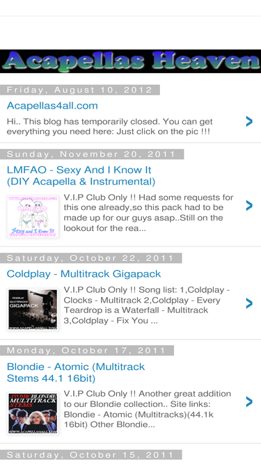 73%Download all your favourite acapellas for free at Acapellas Heaven. All acapellas on this site are scanned with "Mixed In Key"