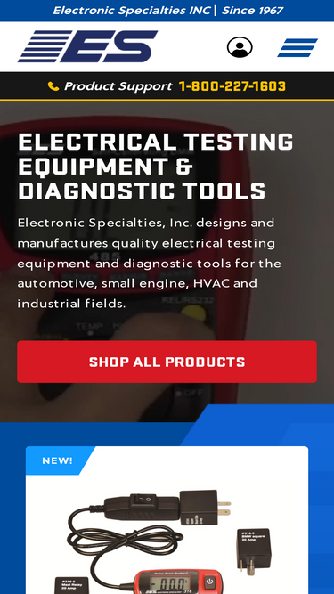 87%Electronic Specialties, Inc. designs and manufactures quality electrical testing equipment and diagnostic tools for the automotive, small engine, HVAC and industrial fields.