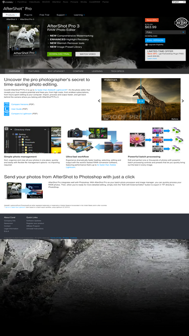 Say hello to Corel AfterShot Pro 3, the world’s fastest photo workflow tool! Edit your photos up to 4x faster than Lightroom so you can spend more time behind the camera. Download a free 30-day trial today!