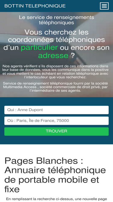 81%grace a notre annuaire pages blanche téléphonique trouver le numero de telephone portable mobile ou fixe d’un particulier