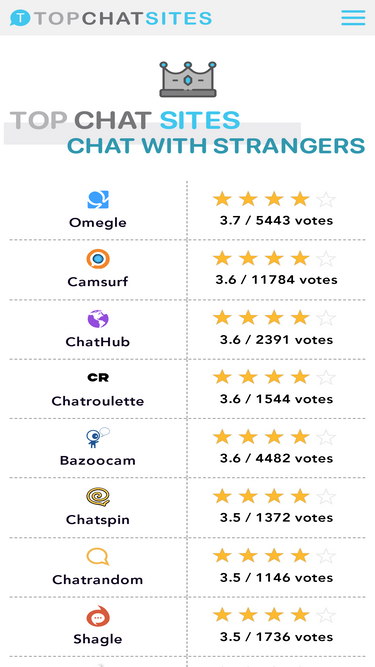 71%Top 10 random video chat sites, instant cam to cam chat with random strangers on 10 different chatroulette apps for free.