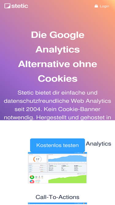 83%Stetic ist eine Web Analytics und Targeting Software, mit der Du Deine Webseite analysieren und personalisieren kannst, um Dein Marketing zu optimieren.