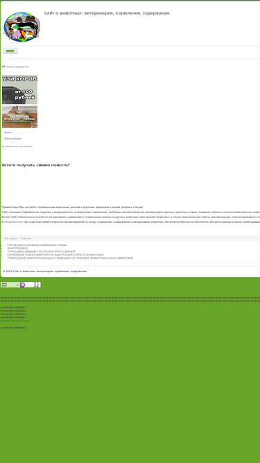 83%сайт о животных: ветеринария, кормление, содержание, лечение, болезней, собак, кошек, коров, крс, свиней, овец, мрс, лошадей, птиц, рыб, пчел. найти, купить, стоимость препаратов, узи сканер, ультразвуковое оборудование для коров, свиней, коз, овец. скачать бесплатно без регистрации книги по ветеринарии, кормлению, содержанию, журналы