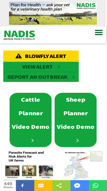 83%NADIS is a unique online based animal health resource for farmers, vets and SQPs. The information is written by veterinary experts, peer-reviewed and presented in a practical format with a high visual clinical content to improve disease awareness and highlight disease prevention.
