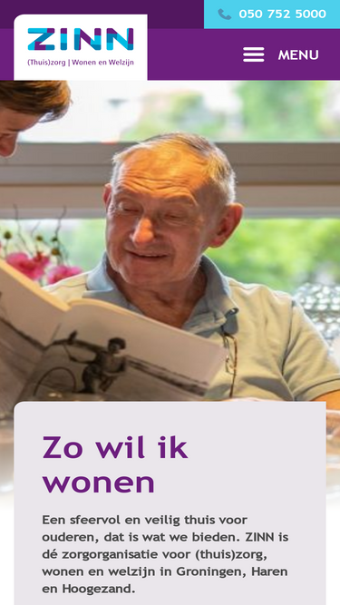 66%Een sfeervol en veilig thuis voor ouderen, dat is wat we bieden. ZINN is dé zorgorganisatie voor (thuis)zorg, wonen en welzijn in Groningen, Haren en Hoogezand.