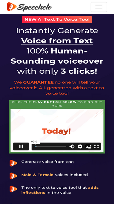 Transform Any Text Into A 100% Human-Sounding Voiceover with only 3 clicks!
