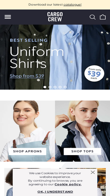 82%cargo crew is australia's award winning online work clothes & uniform shop. we are home of the modern uniform & designers of the original denim aprons. catering to corporate, hospitality & retail industries worldwide.