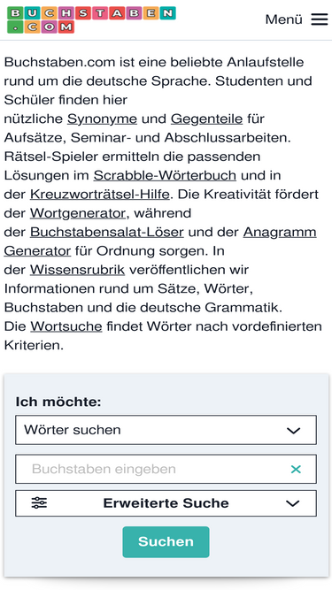 60%buchstaben.com ist ihre anlaufstelle rund um wörter, buchstaben, synonyme, kreuzworträtsel-lösungen, gegenteile, wortbedeutungen uvm.
