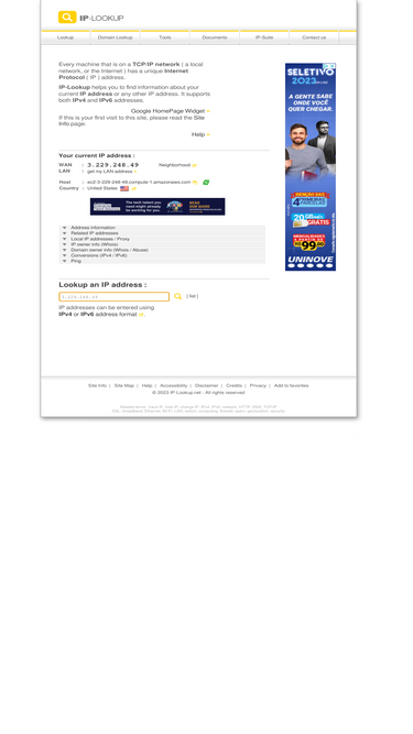 76%determines your ip address and shows information (host, location, whois) about any ip address entered. looks up to 10 ip addresses at the same time