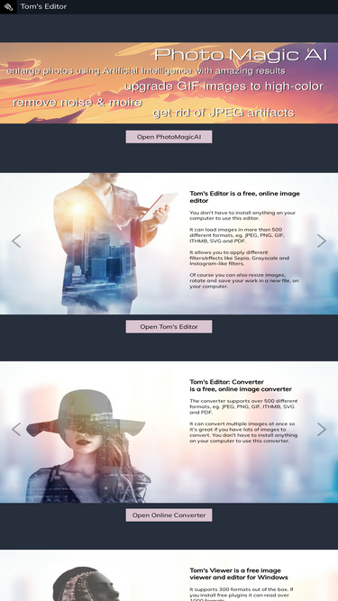87%Photo Editor Online - edit your photos online for free. Resize, apply filters, save in JPG, PDF, GIF and more. Over 500 formats supported