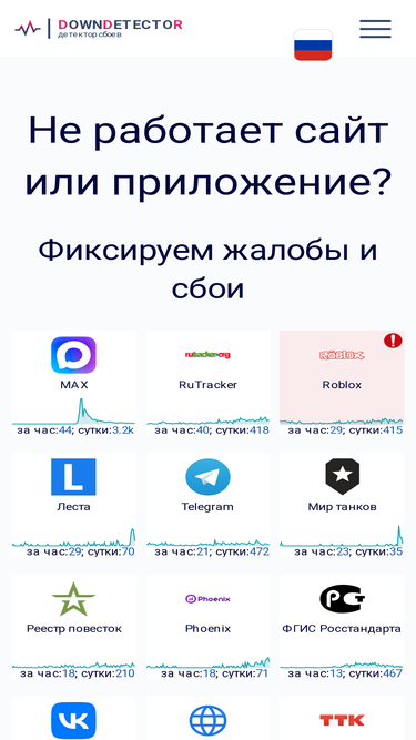 55%Веб-платформа, предназначенная для отслеживания и уведомления о неработающих сервисах, где пользователи могут сообщать о проблемах с компаниями и собирать статистику для анализа и улучшения. Сайт предоставляет возможность кликнуть на название компании сервиса, чтобы уведомить о неработающем состоянии и отслеживать динамику проблем в удобном графическом формате.