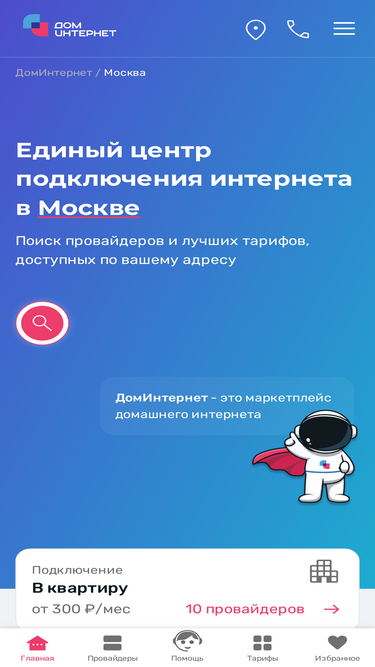 77%Подключите домашний интернет ⭐️ Бесплатный сервис-агрегатор всех доступных интернет-провайдеров и тарифов ✅ Поиск провайдера по адресу дома ✅ Отправьте заявку и подключите интернет в квартиру от 1 дня на сайте dominternet.ru