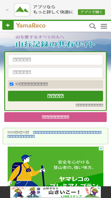 57%ヤマレコは、登山、ハイキングなど、山に関わる全ての方を対象にしたコミュニティサイトです。 写真、gpsログと同期したルート図、標高グラフなどを投稿できる登山の計画や山行記録(登山記録)を中心に、日記や掲示板などの機能も豊富に揃っています。