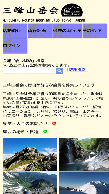 95%三峰山岳会はハイキング、縦走、バリエーション、沢登り、岩登り、雪山、山スキー、山菜採り、温泉などオールラウンドに行っています。今年で創立88年目を迎えました。初心者からベテランまで幅ひろい会員が活動する山岳会です。