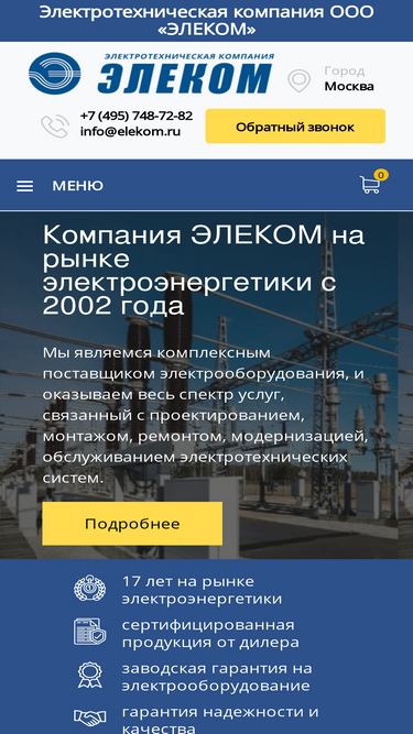 86%Электротехническая компания ООО Элеком — продажа трансформаторов и сопутствующей продукции. Оборудование сертифицировано и имеет гарантию от дилера. Выполним пусконаладочные электромонтажные работы любой сложности + Энергоаудит.