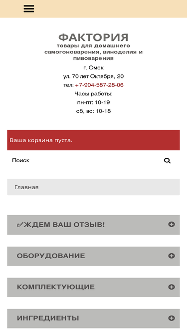 88%магазин фактория - оборудование для самогоноварения, виноделия и пивоварения в омске. дубовые бочки, самогонные аппараты и комплектующие, пивные экстракты,