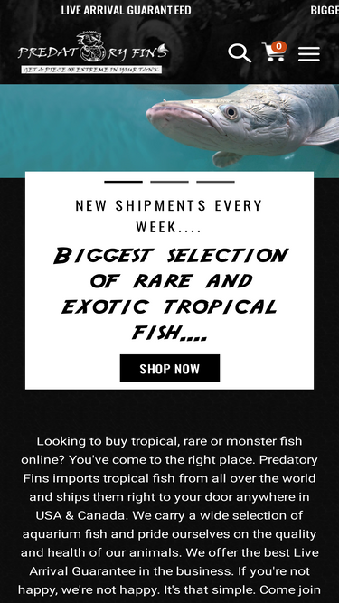 100%At Predatory Fins, we specialize in providing rare, tropical, and monster freshwater and saltwater fish for passionate aquarists. From stunning exotic species to powerful predatory fish, our collection features some of the most sought-after aquatic creatures from around the world.