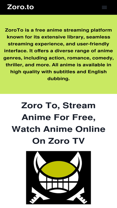 100%Zoro to, zorotv, zorox, zoro tv is a Free anime streaming website which you can watch English Subbed and Dubbed Anime online with No Account required. Enjoy!!!