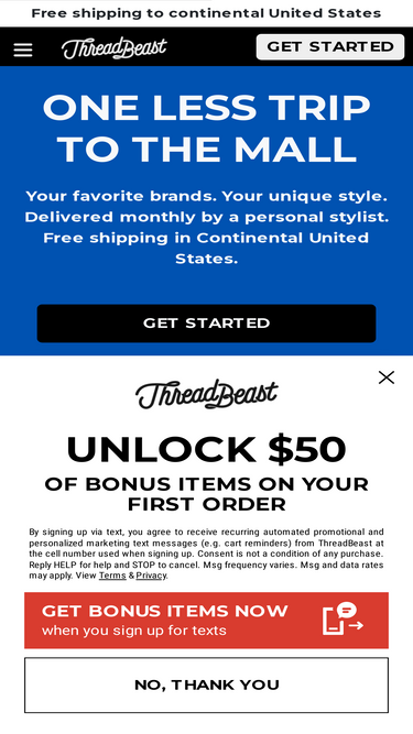 88%ThreadBeast is a men’s subscription box delivered monthly giving you the freshest outfits from your favorite brands. Sign up today!