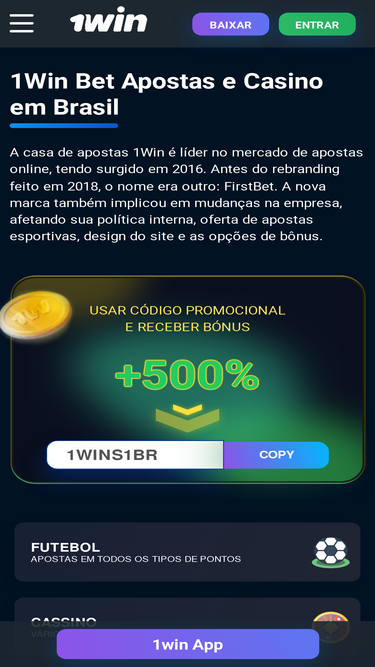 96%1win bookmaker is an overview of gambling opportunities, login and registration methods, sport type selection, betting options, games range in online casinos and poker rooms. Go ahead and create an account to get 500% on your first deposit.