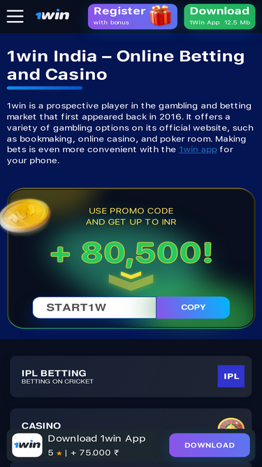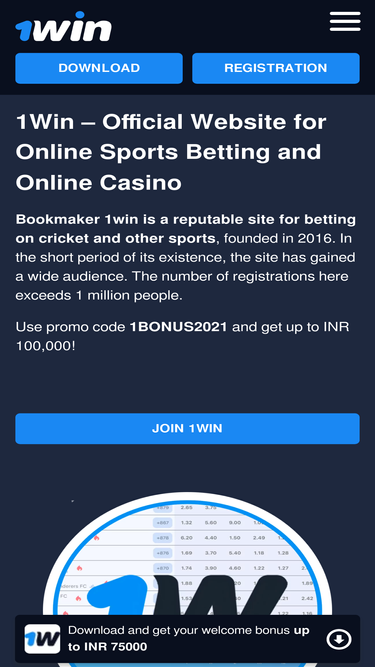 96%Start betting on sports on the official 1win website in India. Get a +500% bonus up to INR 100000 on registration and first deposit!