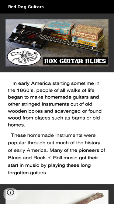 In early America starting sometime in the 1860's, poor people of all walks of life began to make homemade guitars and other stringed instruments out of old wooden boxes and scavenged or found wood from places such as barns or old homes. These homemade instruments were popular through out much