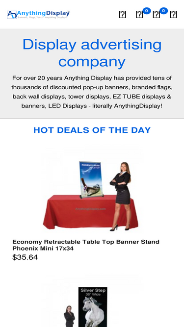 Anything Display has tens of thousands of discounted pop-up banners, branded flags, tower displays, EZ TUBE displays & banners, LED Displays and much more. Buy now!