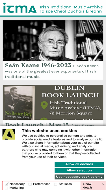ITMA is a non-profit national public archive and resource centre for Irish traditional music, song and dance, and the globally-recognised specialist advisory agency to advance appreciation, knowledge, and the practice of Irish traditional music. Thank you for supporting our work.
