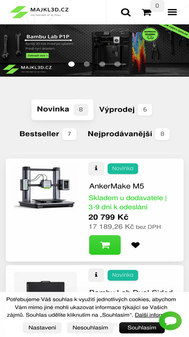 73%E-shop pro 3D tisk: 3D tiskárny Bambu Lab, Prusa, Creality, filamenty PLA/PETG/TPU, náhradní díly a servis. Doprava zdarma od 1 999 Kč a rychlá expedice.