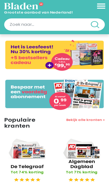 89%Bladen.nl is hét platform voor tijdschriften, tv-gidsen en kranten. Met een aanbod van ruim 275 titels zijn wij de grootste van Nederland.