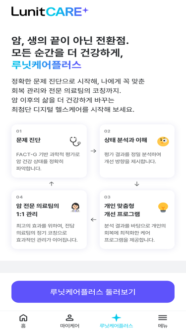 10년 이상 암 상담 전문 의료진의 1:1 관리와 건강 상태에 맞는 맞춤 정보 확인