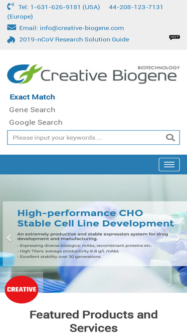 85%creative biogene is a leading biotechnology company that provides transfected stable cell lines, custom viral service, gene editing and synthesis service for the life science community.