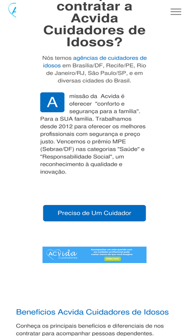 Fale Conosco agora com a Acvida Cuidadores de Idosos e Pessoas com Necessidades, nos atendemos diversos locais. Envie sua mensagem!