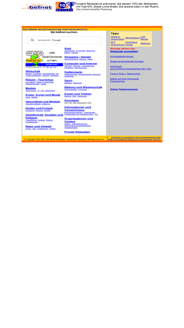 99%bellnet bietet seit 1995 einen umfangreichen, deutschsprachigen webkatalog, der übersichtlich in 15.000 kategorien unterteilt ist.