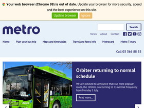 passenger transport information for canterbury, new zealand, especially christchurch and timaru. including bus / ferry timetables, and fares / metrocard. plan your journey, find the next bus. detours and route updates.