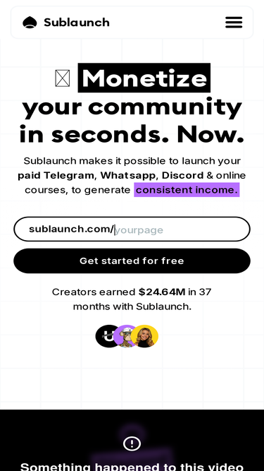 63%Sublaunch makes it possible to launch your paid Telegram, Whatsapp, Discord and online courses, to generate consistent income. Manage access, pages, subscriptions, payments, affiliates, emails — all done for you.
