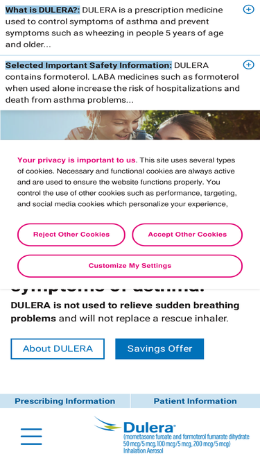 84%learn about a prescription asthma medication that may help control and prevent asthma symptoms on dulera.com.