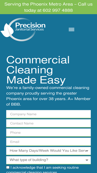 100%Precision Janitorial Services is a family-owned commercial cleaning company proudly serving the greater Phoenix area for over 38 years. A+ Member of BBB.
