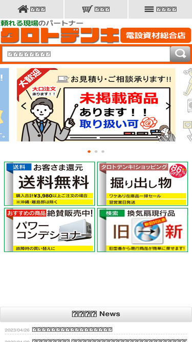 70%通販で電設資材、電設工具をお求めなら電材ネットにお任せ下さい。電気工事・製造現場では欠かせない商品アイテムを100,000点も取り揃えております。5,500円以上のご注文で送料無料です。