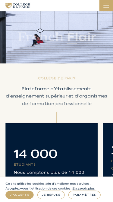 80%Le Collège de Paris est une communauté d’établissements d’enseignement supérieur et d’organismes de formation professionnelle qui a pour mission principale de rendre l'excellence accessible.