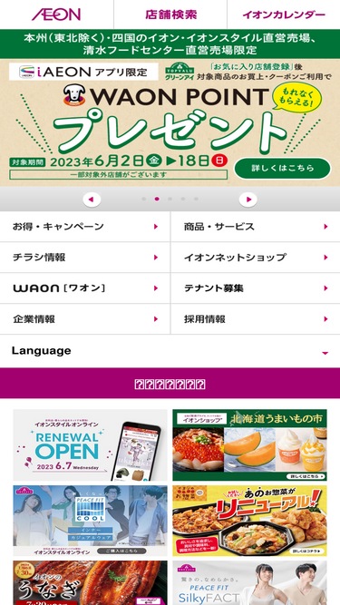 100%イオンのお買物情報。店舗検索、チラシ情報、キャンペーン・イベントなどお得な情報をご案内しています。企業情報も掲載。