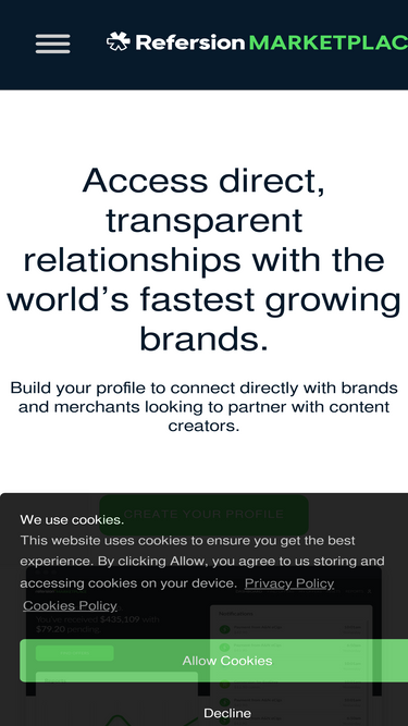 79%Access direct, transparent relationships with the world's fastest-growing brands in minutes with Refersion Marketplace.