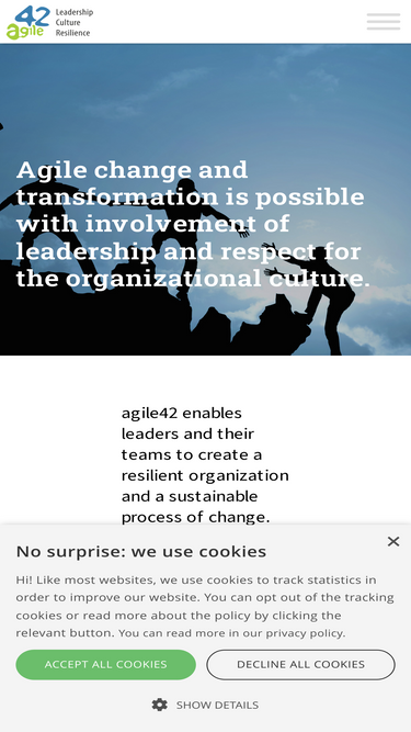 100%agile42 tarjoaa kasvuhakuisille johtajille tarvittavat työkalut sekä ymmärryksen muutosajattelun merkityksestä itselleen ja organisaatiolleen