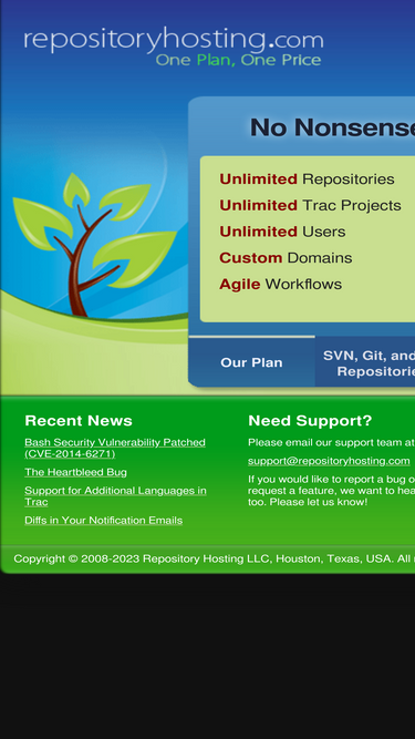 Repository Hosting: Unlimited Subversion, Git, Mercurial, and Trac Projects