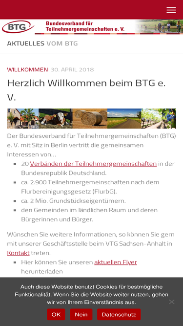100%Der Bundesverband für Teilnehmergemeinschaften (BTG) e. V. mit Sitz in Berlin vertritt die gemeinsamen Interessen von ca. 3.800 Teilnehmergemeinschaften nach dem Flurbereinigungsgesetz (FlurbG) mit über 3 Mio. Grundstückseigentümern.
