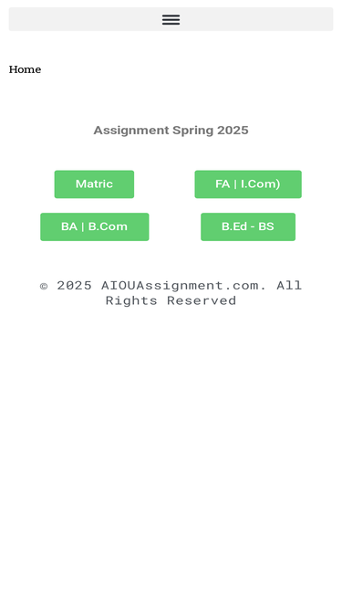 100%Download AIOU Solved Assignments Spring 2025 in free PDF format for Matric, FA, BA, and Associate Degree programs. Easily access all course codes, submission dates, and LMS/tutor info.