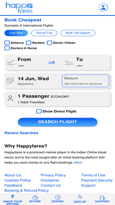 64%HappyFares AI based technology helps thousands of travelers to book low-priced flight tickets online and get the cheapest airfares and save money on every trip.
