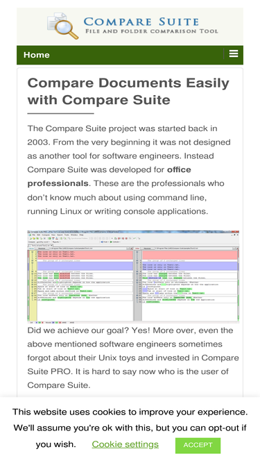 compare and match files and folders with compare suite. it supports pdf, word, excel, powerpoint. line ignoring and other options make it a must-have tool.
