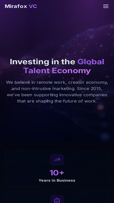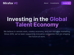 94%Mirafox VC invests in remote work, creator economy, and non-intrusive marketing. Since 2015, supporting innovative companies shaping the future of work.