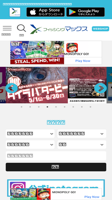 100%フィッシングマックス釣り情報サイト。最新の釣果情報と釣具・ルアーの新着情報をリアルタイムでお届けいたします。